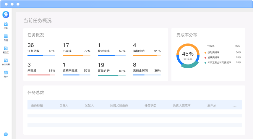 人工提醒全靠相关负责人提醒员工任务进度,任务一多,时常手忙脚 乱不清楚完成时间